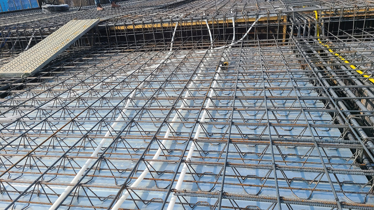 슬라브를 시공하기 위한 철근을 배근하고, 스페이서를 설치합니다.