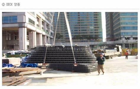 이 과정에서는 크레인이나 기타 양중 장비를 사용하여 데크플레이트를 안전하게 이동시킵니다.