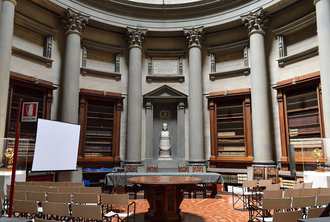 라우렌티아나 도서관은 피렌체의 산 로렌초 성당에 부속된 도서관으로, 미켈란젤로가 설계한 건축물입니다.