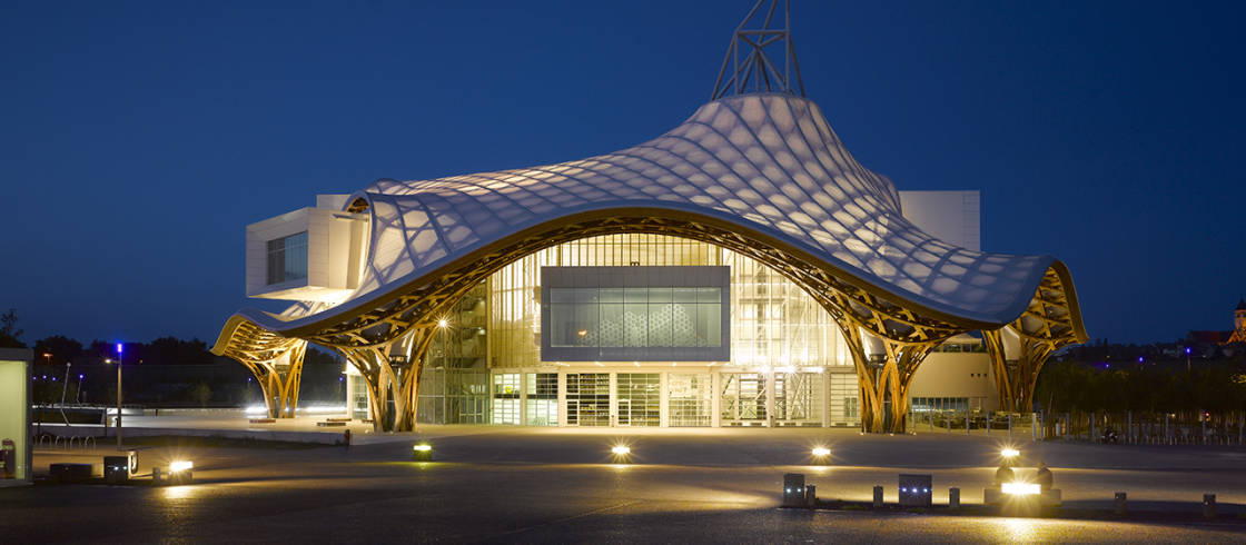 특징: 프랑스 국토의 형태인 육각형을 이미지한 설계로, 천장의 구조는 중국의 전통적인 대나무로 짠 모자에서 영감을 받아 나무로 짜여진 것입니다.