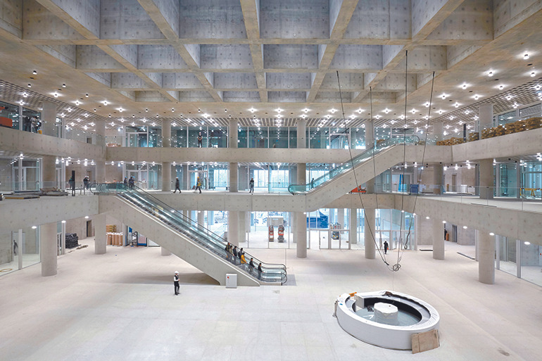 수직적으로 높거나, 여러 동의 건물이 아니라 단아하고 간결한 형태를 갖춘 단 하나의 커다란 볼륨을 가진 건축물로, 화려한 기교 없이 절제된 아름다움을 지니면서도 편안하고 풍부한 느낌을 주는 백자 달항아리의 아름다움을 연상시킵니다.