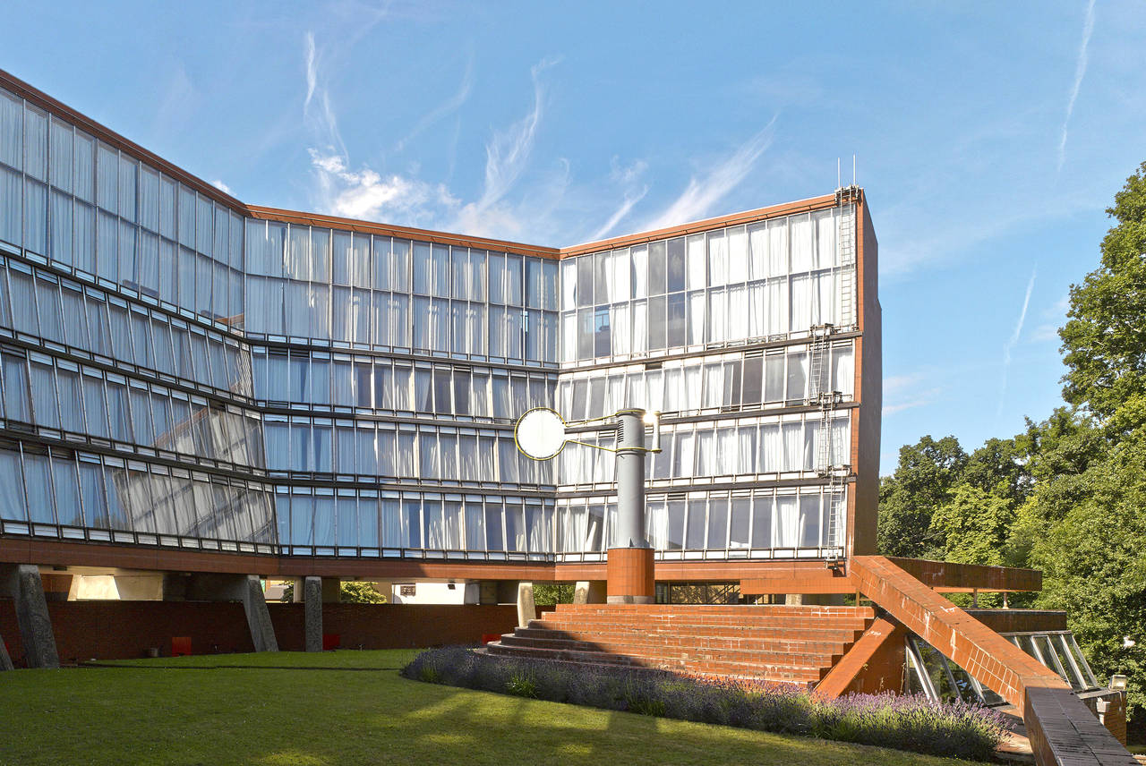 이 건물은 스털링의 ‘레드 트릴로지’ 중 하나로, 강렬한 색상과 형태, 그리고 개방된 공간 구성으로 주목받습니다.