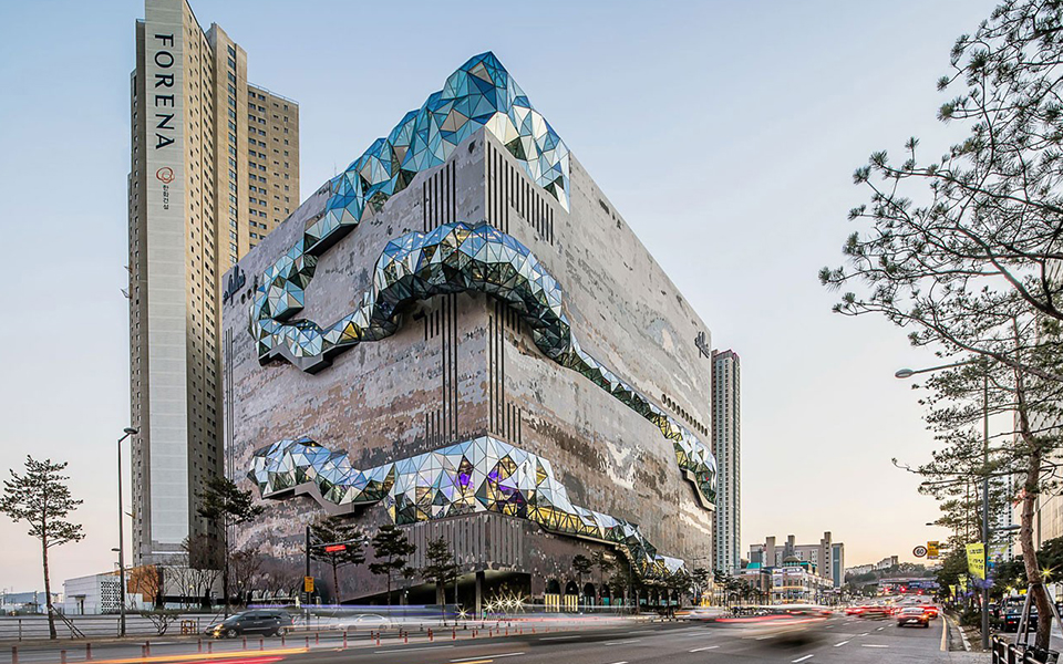 현대적인 쇼핑 경험을 제공하는 공간으로, 독특한 건축 디자인이 특징입니다.