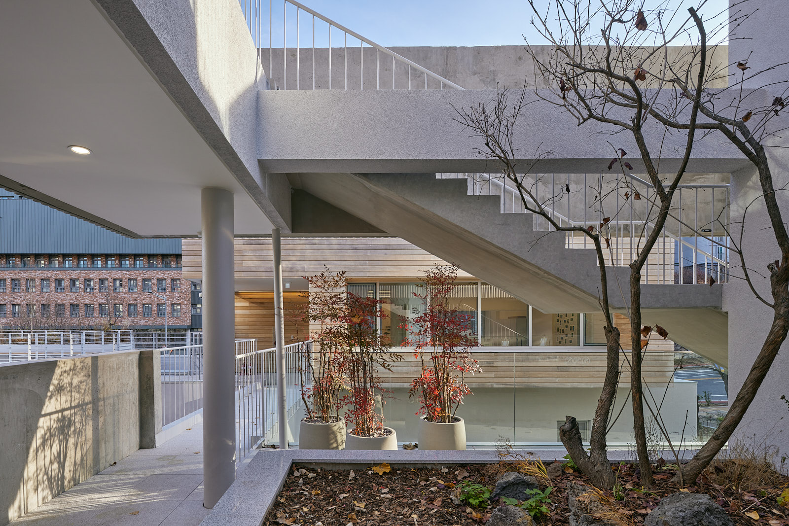 - 다양한 기능: 세 개 층으로 이루어진 외부 동선은 상황에 따라 길, 배움터, 정원으로 변하며, 각기 다른 높이에서 공원을 조망할 수 있는 장소를 제공합니다.