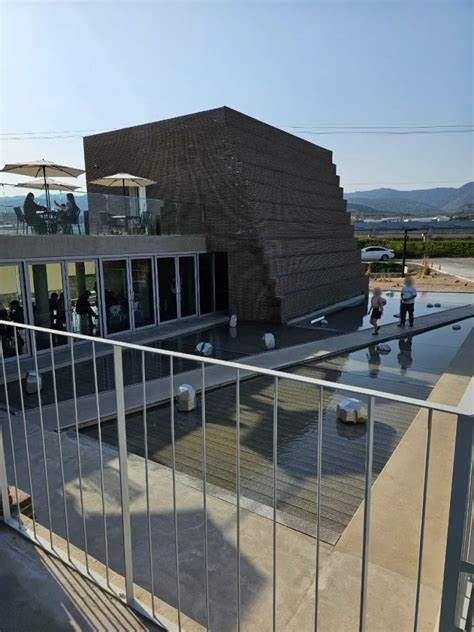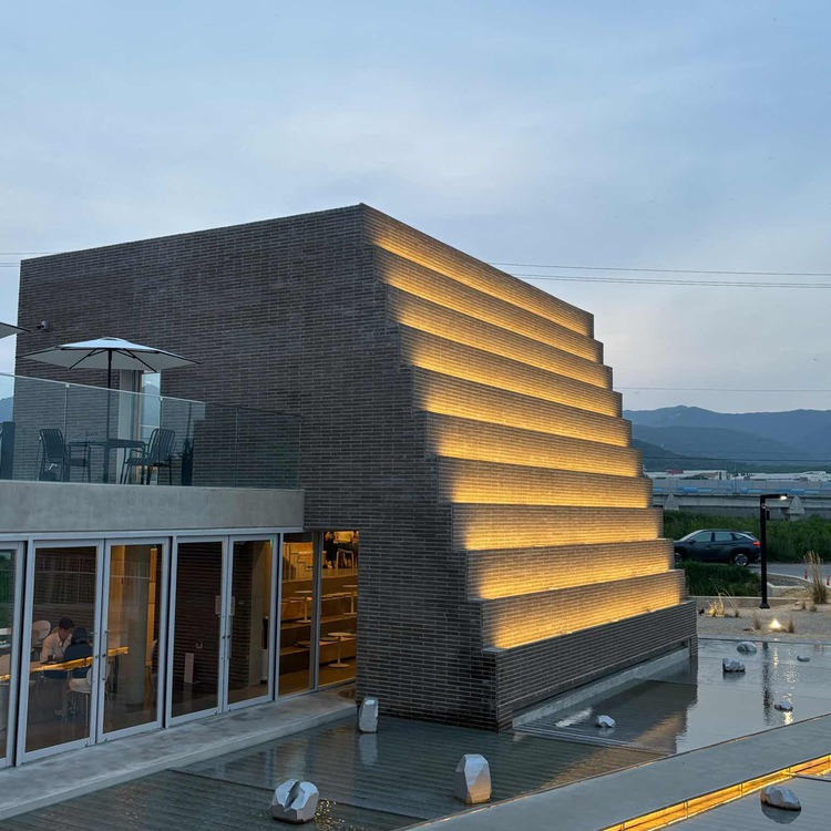 인필름 카페의 설계는 금호강을 따라 흐르는 자연 경관에서 영감을 받았습니다.