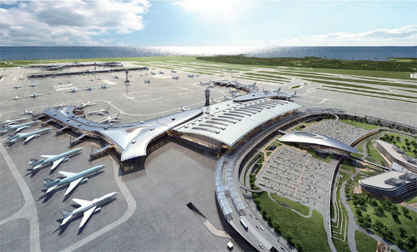 인천국제공항은 비행기의 크기를 고려하고 접근성을 높이기 위해 둥근 곡선 형태로 설계되었습니다.
