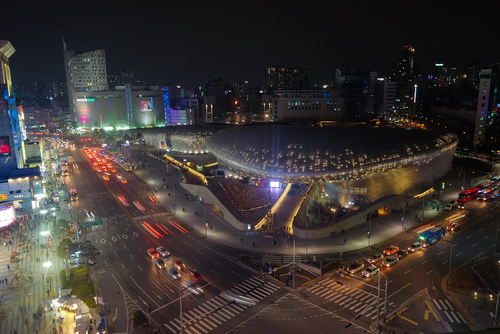 서울 동대문에 위치한 이 복합 문화 공간은 하디드의 유기적이고 미래지향적인 디자인 언어를 잘 보여주는 예입니다.