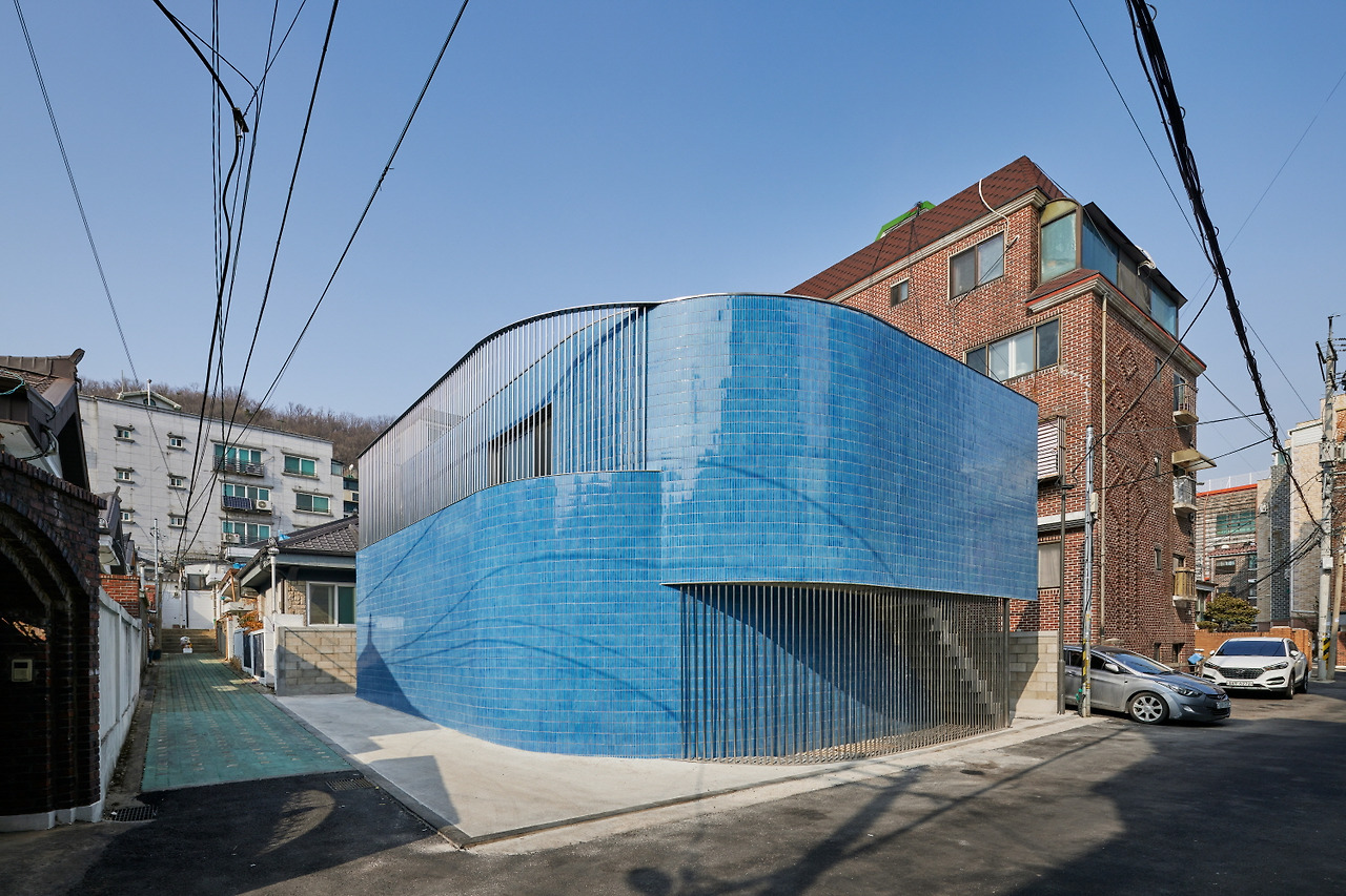 이 건축물은 도시적 리미널 스페이스를 창출합니다. 2층 주거의 진입부와 1층 작업 공간의 마당이 서로 연결되어, 일상적인 건축 언어를 통해 접근성을 높였습니다. 반지하 형태의 디자인을 일부 적용하여, 도로와의 접근성을 고려했습니다.